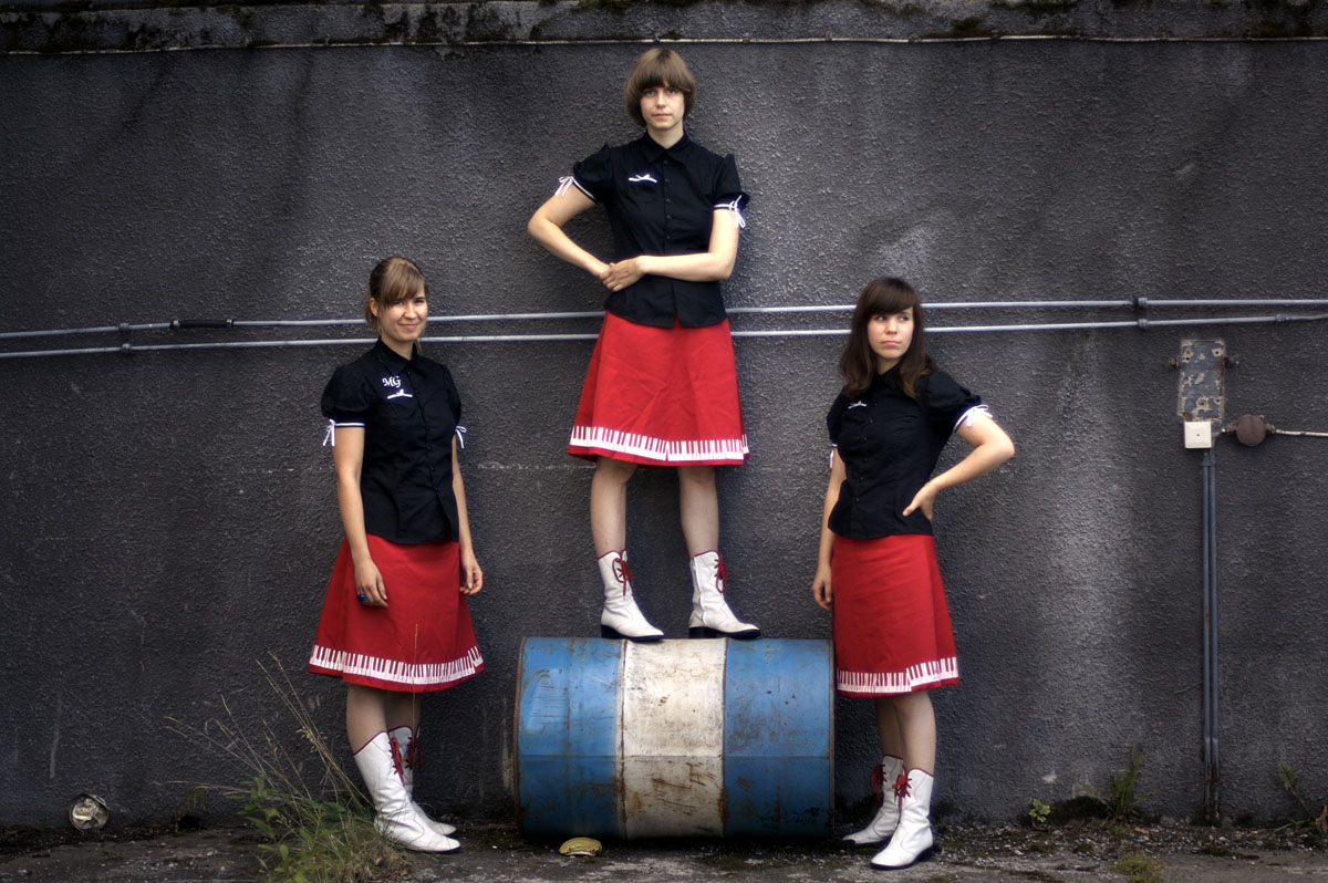 Freitag, 4. Mai 2007THE MICRAGIRLSGARAGE DESPERATE ROCK'N'ROLL AUS FINNLAND! Oben im finnischen Kopio fragten sich drei Mädchen, warum die anderen sie für verrückt hielten. Eine Antwort fanden sie keine, und so sagten sie sich: «Wenn schon, denn schon!». Mari nahm die Gitarre, Kata dudelte auf der Orgel, Risu drosch auf das Schlagzeug und heulte dazu wie ein Wolf: Schmutziger Garage-Rock’n’Roll war das Ergebnis. Dann nähte sich das fulminante Trio auch noch selbst wunderbar entzückende brave, biedere Kleider: The Micragirls waren das Ergebnis. Ihr Debut heisst «Feeling dizzy honey?!», und schon einmal schwindlig gefühlt hat sich der Rezensent der Süddeutschen Zeitung. Der schrieb nämlich: «Herrlich anzuhören und auch nicht gerade unangenehm anzuschauen.» Viel Spass! Nicht verpassen :)